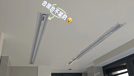 当初装的时候觉得是能嵌入到吊顶中,不会觉得有任何突兀的感觉,但由于它是比较纤细的,当你悬挂衣服还可以,但要是晾晒比较重的窗帘或者被子,经常会有倾斜的情况。